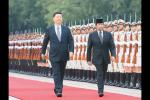 圖為會(huì)談前,習(xí)近平為哈桑納爾舉行歡迎儀式。