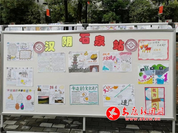 此次展板按地域文化特色,分為漢濱區(qū)站、旬陽平利站、漢陰石泉站、鎮(zhèn)坪站、紫嵐寧站五大板塊。每一張手抄報(bào),從設(shè)計(jì)到排版,從書寫到繪畫,都各具特色:這里面有對(duì)壯美河山的贊美,有對(duì)雄偉建筑的欽佩,有對(duì)安康區(qū)縣奇觀異景、民俗文化的自豪……圖文并茂的手抄報(bào)吸引了全校師生駐足觀賞,嘖嘖稱贊,更有學(xué)生拿著紙筆認(rèn)真地做記錄。