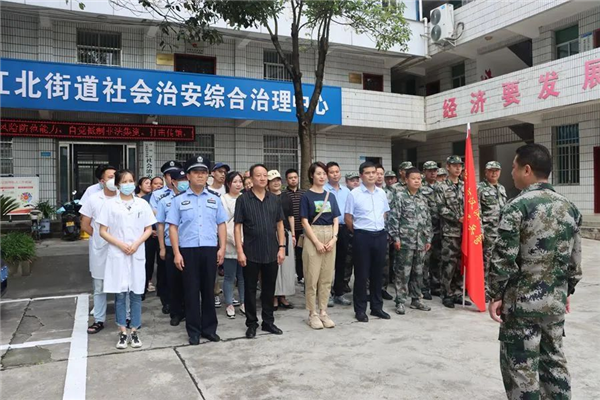 7月23日上午,江北街道防汛防滑應(yīng)急指揮部收到“汛情”,指揮部各成員單位迅速“集結(jié)”趕往劉家溝社區(qū)增援。