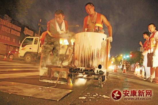 8月14日晚,施工人員正在給新城北門十字劃人行橫道標(biāo)線。據(jù)工程負(fù)責(zé)人介紹,為迎接雙創(chuàng)驗收,他們從8月9日至17日給城區(qū)的各路段進(jìn)行道路標(biāo)線,預(yù)計工程量達(dá)萬余平……