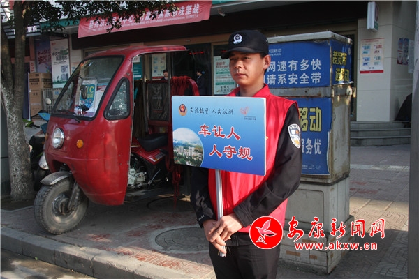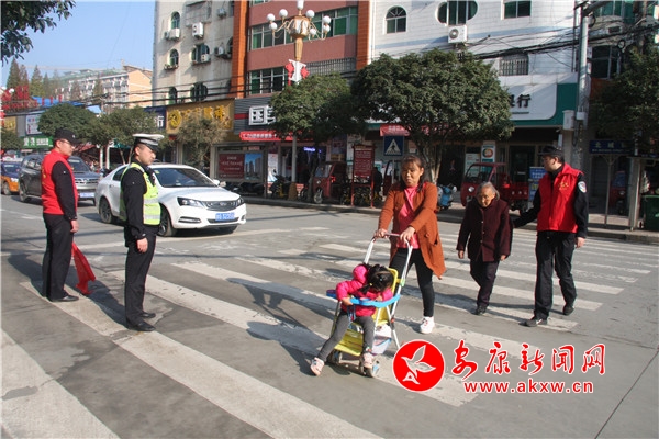 10月30日,該縣公安局20余名志愿者們身穿紅馬甲,手持小紅旗來到無交通信號燈北城街與解放街十字路口,通過揮動小紅旗、文明勸阻等方式,引導過往行人過馬路走斑馬線,提醒過往車輛減速慢行、禮讓行人,幫助老年人、到小孩的婦女、兒童、殘疾人等有困難的群眾安全過馬路,倡導“機動車禮讓斑馬線,機動車按序排隊通行,機動車有序停放,文明使用車燈,行人、非機動車各行其道,行人、非機動車過街遵守信號”六大文明交通行為。