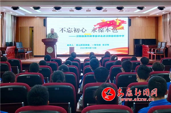 本網訊(通訊員 蘭本波)追溯五月之紅,續(xù)寫紅色華章。5月12日,由漢陰縣退役軍人事務局開展的英烈故事“進機關、進學校、進社區(qū)、進軍營、進企業(yè)”巡回宣講活動走進漢陰縣初級中學。Amm安康新聞網