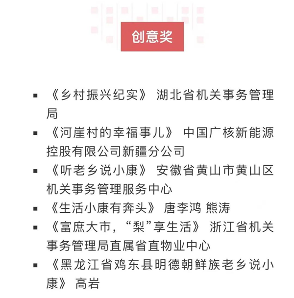 其中,恒口示范區(qū)選送作品《生活小康有奔頭》(作者·唐李鴻、熊濤)榮獲創(chuàng)意獎(jiǎng),其風(fēng)格親切,制作精良,感染力和觀賞性強(qiáng)。作品從獨(dú)特老鄉(xiāng)視角,讓老鄉(xiāng)當(dāng)主角,面對(duì)鏡頭講述自己用勞動(dòng)創(chuàng)造幸福生活的故事。同時(shí),生動(dòng)展示我們黨帶領(lǐng)全國(guó)各族人民打贏脫貧攻堅(jiān)戰(zhàn),全面建成小康社會(huì)的偉大歷史成就。