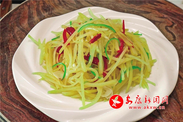 酸辣土豆絲:使用土豆、辣椒、白醋、蔥、姜等制作而成的菜肴,是深受嵐皋老百姓喜愛的一道家常菜,也是嵐皋人餐桌上最常見的家常菜,其主料土豆性平和味,有改善腸胃功能、預(yù)防高血壓的功效。2yV安康新聞網(wǎng)