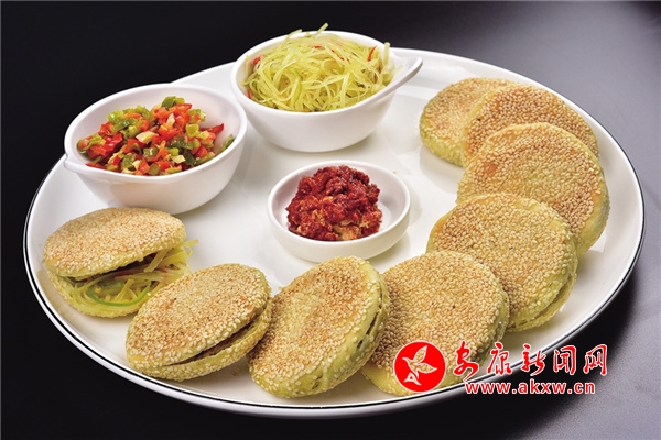 油渣子饃:在搟成的薄餅上面,抹上油渣和蔥花,撒一點(diǎn)鹽,卷成長條,切一段順一個方向卷成一團(tuán),再搟成薄餅。將鍋燒熱,加少許油,小火煎薄餅,兩面翻煎,煎黃為止。香香脆脆的油渣,配上濃郁的蔥末和柔軟的烙餅,香味四溢。2yV安康新聞網(wǎng)