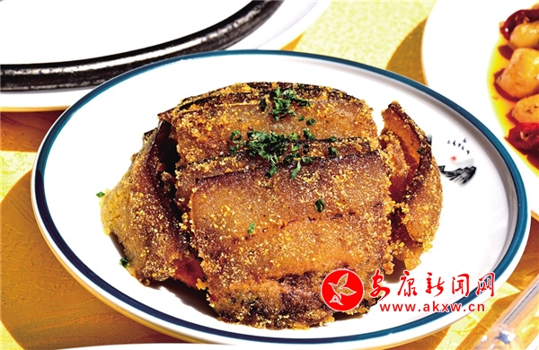 粉蒸肉:是嵐皋待客名菜。成菜時以老藕、南瓜、紅薯等墊底,以主料帶皮五花肉和調(diào)味料制作而成。粉蒸肉有肥有瘦,紅白相間,嫩而不糜,米粉油潤,軟、嫩、甜、香、咸,糯而清香,滋味豐富,誘惑滿滿。2yV安康新聞網(wǎng)