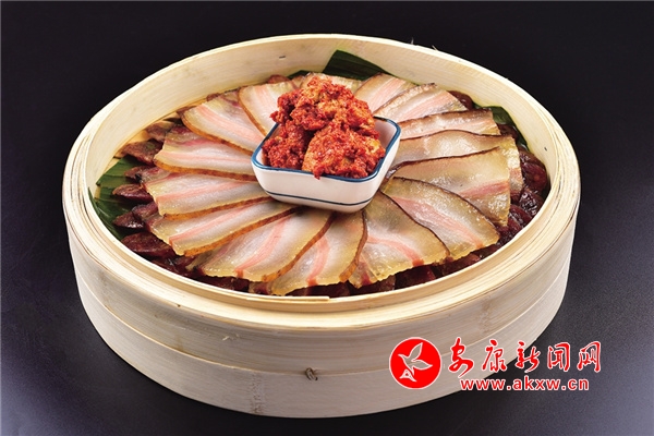 砧板臘肉:松果碳木熏制的臘肉,只需經(jīng)過簡單的加工,即可做出美味的食品,這是地地道道的嵐皋巴人美食。2yV安康新聞網(wǎng)