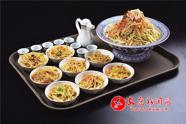 老街涼面:采用家傳手藝,主料為手工堿面,煮熟后用甘甜的冷水過涼,加飄香油辣子、秘制醋湯、蒜泥等精心調(diào)味,拌勻即成。堿面可改善人體微酸體質(zhì),醋湯解膩、醒酒,既可調(diào)味亦可單飲。青翠的黃瓜絲、嬌艷的胡蘿卜絲再加上引人垂涎的酸醋,一份老少皆宜的老街涼面余“味”繞梁。2yV安康新聞網(wǎng)