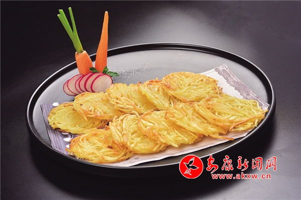 土豆絲餅:用嵐皋當(dāng)?shù)氐耐炼骨薪z,混入面糊,再用油煎炸出鍋,色澤金黃,清香酥脆,回味無窮。 2yV安康新聞網(wǎng)