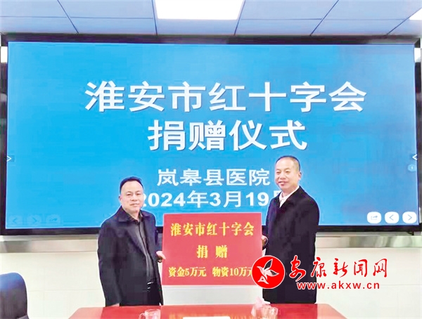 淮安市紅十字會為嵐皋縣醫(yī)院捐贈資金與物資。mve安康新聞網(wǎng)