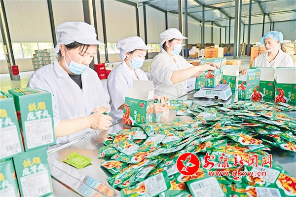 在蘇陜協(xié)作資金的幫扶下,嵐皋燭山食業(yè)有限公司開足馬力生產(chǎn)。mve安康新聞網(wǎng)