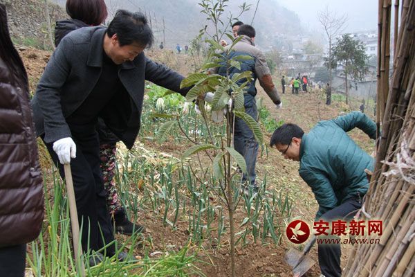 3月11日,嵐皋縣直機(jī)關(guān)300余人參加義務(wù)植樹活動(dòng),當(dāng)天栽植枇杷樹1400棵。該縣計(jì)劃今年綠化造林6.2萬畝,其中春季造林達(dá)到3萬畝以上,實(shí)現(xiàn)過半目標(biāo)。周湑堯 攝……