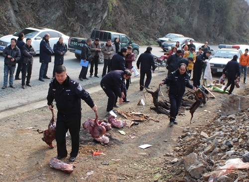 1月29日,嵐皋縣召開(kāi)銷(xiāo)毀收繳野生動(dòng)物產(chǎn)品現(xiàn)場(chǎng)會(huì),依法公開(kāi)銷(xiāo)毀一批收繳的野生動(dòng)物產(chǎn)品和獵捕工具?h工商、食品、畜牧等部門(mén)負(fù)責(zé)人對(duì)銷(xiāo)毀活動(dòng)進(jìn)行全程監(jiān)督,確!