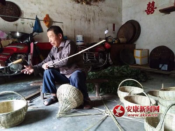 記者探訪他時,老人正在摸索著編織竹籃。h4f安康新聞網(wǎng)
