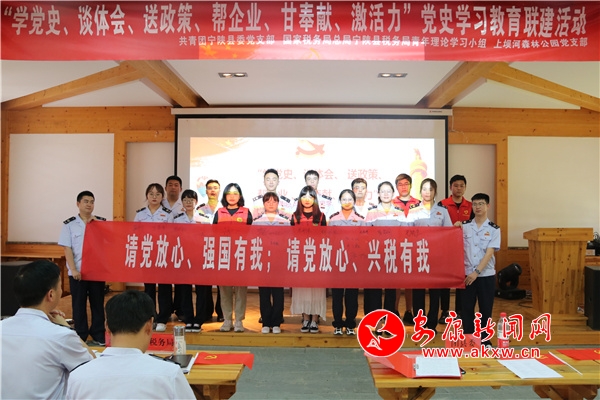 誦讀紅色經(jīng)典、感懷崢嶸歲月、聆聽革命故事、汲取榜樣精神、開展志愿服務(wù)、弘揚(yáng)時(shí)代新風(fēng)……7月22日,一場(chǎng)以“談體會(huì) 送政策 幫企業(yè) 甘奉獻(xiàn) 激活力”為主題的聯(lián)建活動(dòng)在寧陜縣上壩河國(guó)家森林公園拉開帷幕,讓來(lái)自共青團(tuán)寧陜縣委、寧陜縣稅務(wù)局及寧陜縣華鑫上壩河旅游有限公司的近40名黨員及青年干部接受了一場(chǎng)鮮活而生動(dòng)的黨史學(xué)習(xí)教育。rLz安康新聞網(wǎng)