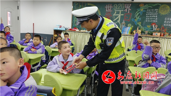 最后,宣傳民警鼓勵(lì)學(xué)生“交通安全、從我做起”,從小養(yǎng)成遵守交規(guī)、文明出行的良好習(xí)慣。把學(xué)到的交通安全知識(shí)帶回家,發(fā)揮“小手拉大手”的紐帶作用,當(dāng)好交通安全的宣傳員和監(jiān)督員,監(jiān)督家長(zhǎng)遵守交通法規(guī),共同維護(hù)道路交通秩序,做到安全文明出行。
