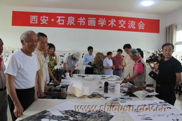 6月20日,西安市書畫藝術(shù)研究院的著名書畫家蔡嘉礪、景德慶、張冠福、王振民、武儒昌、南云川、蔣永明、李延等一行二十人,同石泉的王開明、李昌玉等書畫家門聚……