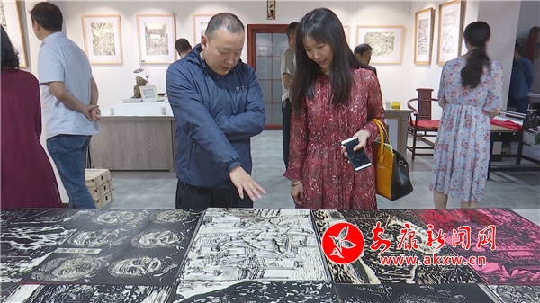 走進(jìn)展廳,各具特色、創(chuàng)意新穎的黑白木刻版畫作品整齊陳列,《老城印象》、《黑山戰(zhàn)役》、《疫情防控》等等各類題材的版畫作品以一草一木,一山一石,一景一物,對時代主題、紅色經(jīng)典、鄉(xiāng)土文化作出了藝術(shù)創(chuàng)作者獨到的詮釋,吸引了眾多參觀者駐足觀看,互相交流感受體會。