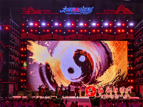 夜幕降臨,開幕式現(xiàn)場美輪美奐、氣勢(shì)恢宏。燈光秀、歌舞秀拉開活動(dòng)帷幕,博得雷鳴般的掌聲。21個(gè)鎮(zhèn)代表隊(duì)登臺(tái)亮相。“煙花秀”璀璨奪目,化作多彩光芒,點(diǎn)亮太極城的夜空。伴隨著現(xiàn)場觀眾的激情吶喊,文藝節(jié)目相繼上演,歌伴舞《沖呀!去旬陽》、旬陽好物旬陽非遺推介、舞蹈《舞動(dòng)長樂紅》、民歌聯(lián)唱《姐不約郎郎不來》、千人復(fù)誦《太極·旬陽賦》、太極秀《太極江湖》、千人齊跳《太極舞》等節(jié)目,充分展示了旬陽的文化底蘊(yùn)、旅游資源、人文風(fēng)情,掌聲如潮、歡聲如雷。中國內(nèi)地歌手屠洪剛演唱的歌曲《你》《江山無限》《精忠報(bào)國》瞬間將現(xiàn)場氣氛燃爆。
