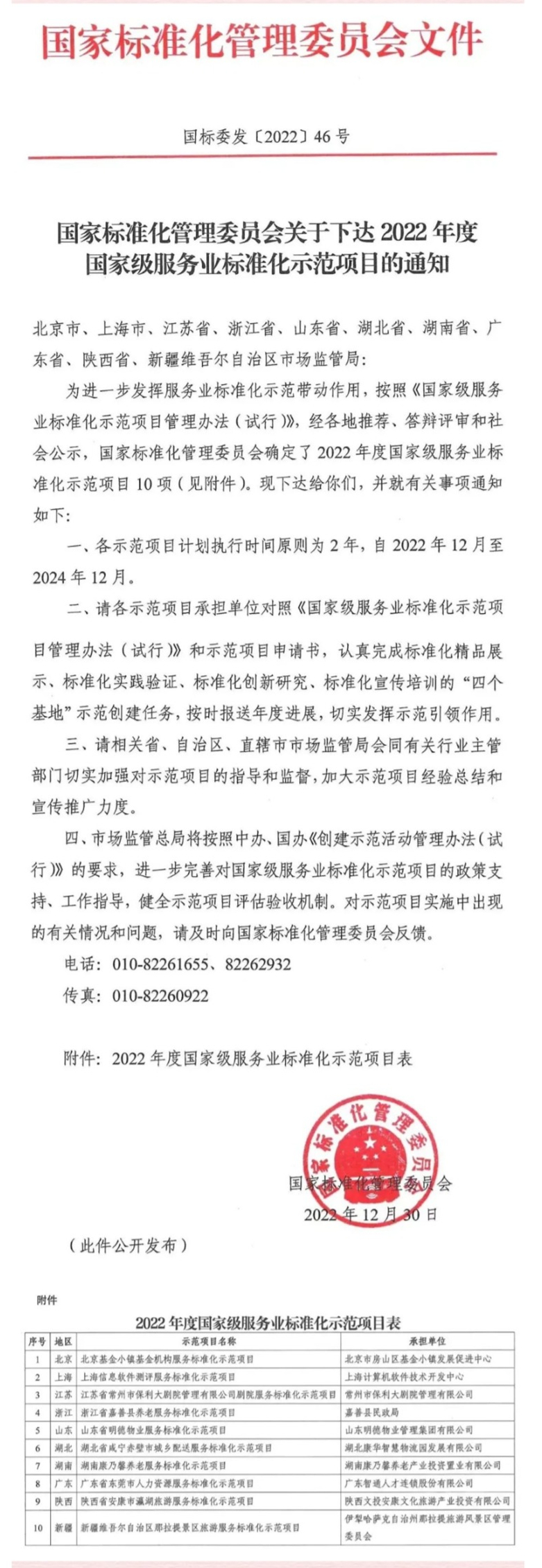 2022年12月30日,國家標準化管理委員會下達全國十個國家級服務業(yè)標準化示范項目,“陜西省安康市瀛湖旅游標準化示范項目”,經過資審、文審、選拔、答辯、公示等程序,從全國一百余家單位中脫穎而出、光榮上榜,成為陜西省第一個國家級旅游標準化示范項目。