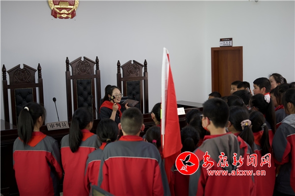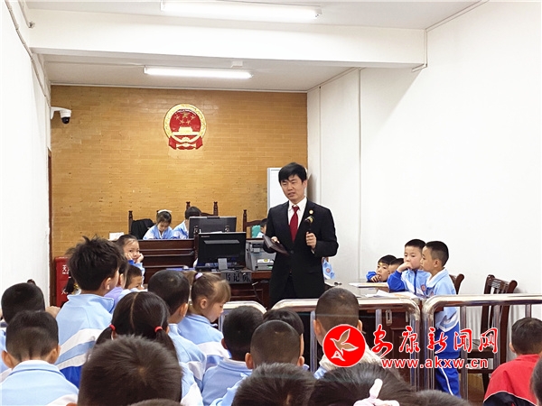 在參觀過(guò)程中,干警帶領(lǐng)同學(xué)們走進(jìn)訴訟服務(wù)中心和干警辦公室了解了法院干警的工作場(chǎng)所。隨后,帶領(lǐng)同學(xué)們參觀審判庭,現(xiàn)場(chǎng)向同學(xué)們介紹科技審判法庭的功能及庭審流程,并展示了法袍、法槌和法徽,同時(shí)用深入淺出的語(yǔ)言和提問(wèn)互動(dòng)的方式向孩子們講解了法袍、法槌和法徽的象征意義,同學(xué)們興趣濃厚,紛紛走上審判臺(tái),親身感受和觸摸審判設(shè)施,感受法庭審判的嚴(yán)肅和莊重。TDk安康新聞網(wǎng)