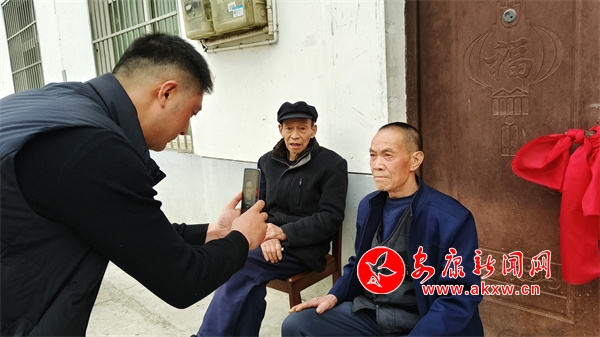 吳勇口中的五保老人叫張顯雙,居住在核桃坪村三組,今年已有八十高齡,家中除了老伴還有一個五十多歲患精神性疾病的兒子,由于全家沒有勞動能力所以享受著國家的五保政策,一家人也算過得其樂融融,日常,一家人也會幫助鄰里做些簡單農(nóng)務(wù)打發(fā)時間。聽說最近社保需要在手機上認證,把一家人急得夠嗆,沒想到正為此事發(fā)愁,吳勇就走到了房門。“‘張叔,吃了午飯沒有,最近身體還好吧。’‘正愁有事找你你就來了,趕緊給我們一家子認證一哈。’”兩人在院子里經(jīng)過簡單寒暄,吳勇便掏出手機細心地為老人開展認證服務(wù),“張叔,向左轉(zhuǎn)個頭,再向右轉(zhuǎn)哈,再眨個眼睛”只見吳勇在嫻熟的操作中就完成了一家人的認證工作,而老人爽朗的笑聲中無不表露出對干部細心工作的認同。