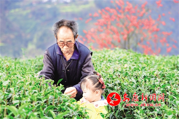 爺爺帶著孫女采春茶 夏玉琦 攝