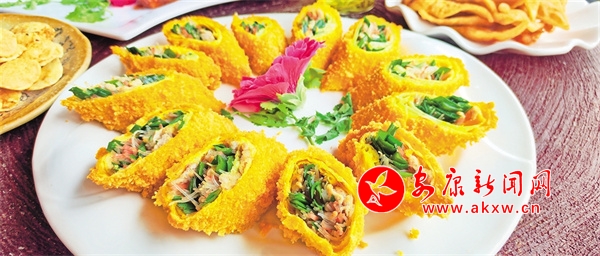 采風(fēng)團(tuán)的第一站,來(lái)到了蒿坪鎮(zhèn)雙星社區(qū)的聚福山莊,雙星社區(qū)是“十二五”期間建設(shè)的移民搬遷社區(qū),因?yàn)槿丝诰奂,村民王益軍?ldquo;十三五”期間搶抓蒿坪鎮(zhèn)發(fā)展農(nóng)旅產(chǎn)業(yè)的機(jī)遇,開(kāi)辦了聚福山莊農(nóng)家樂(lè)。通過(guò)當(dāng)?shù)卣哿Υ蛟?ldquo;紫陽(yáng)味道”品牌,聚福山莊開(kāi)發(fā)出一系列具有當(dāng)?shù)靥厣拿朗承〕,用佳肴留住客人的腳步與味蕾。“香酥羊肉餅、炸響鈴、蒸米蒿饃、農(nóng)家香酥里脊卷、油渣餅都是我們這的特色,原材料土生土長(zhǎng)、綠色健康,客人吃了都說(shuō)好。”在大廚汪顯峰簡(jiǎn)單直白的介紹下,一行人食指大動(dòng),用親身體驗(yàn)言表出真實(shí)感受。“這個(gè)蒸米蒿饃很有特色,小時(shí)候物資匱乏,只好用面粉拌著山上長(zhǎng)的米蒿用來(lái)蒸饃吃,現(xiàn)在生活好了,再吃蒿子饃真是別有一番風(fēng)味,希望當(dāng)?shù)卣苤r(nóng)民、農(nóng)企深挖本土資源特色,將小風(fēng)味打造成大產(chǎn)業(yè)。”作家、書(shū)法家蔣典軍看到眼前的小吃,發(fā)出了滿(mǎn)心感慨。4v8安康新聞網(wǎng)