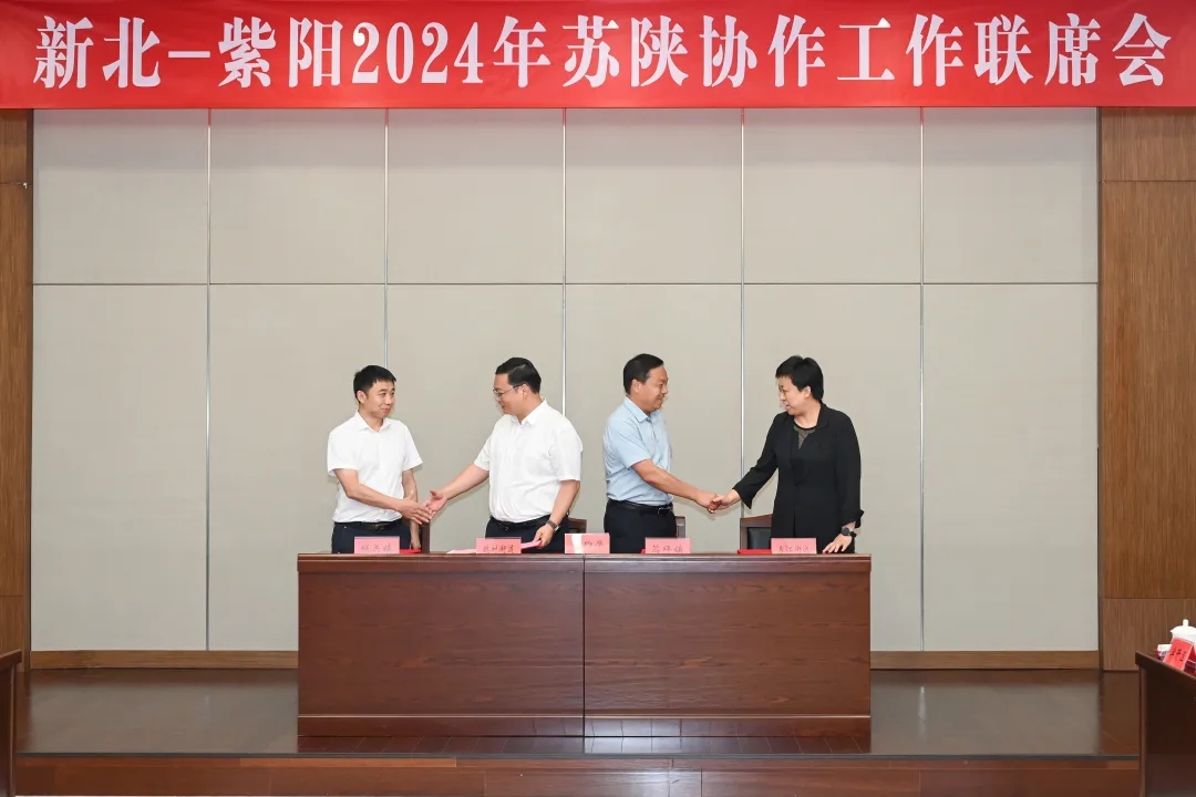 6月12日,新北-紫陽(yáng)2024年蘇陜協(xié)作工作聯(lián)席會(huì)召開(kāi)。區(qū)黨工委書記、區(qū)委書記周慶,紫陽(yáng)縣縣長(zhǎng)王燊出席會(huì)議并講話。gwe安康新聞網(wǎng)