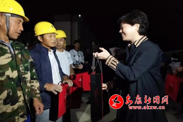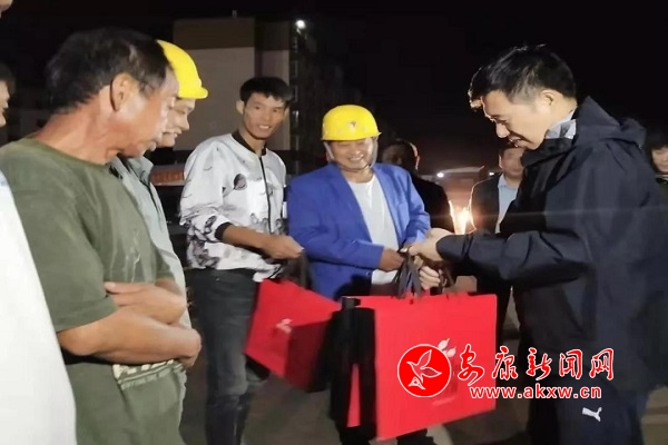 在深夜的施工現場,郭青向工人和基層干部送上了月餅等慰問品,對他們在中秋佳節(jié)期間依然堅守工作崗位的敬業(yè)精神和舍小家顧大家的奉獻精神表示崇高敬意,叮囑大家一定要注意身體健康和夜間施工安全。