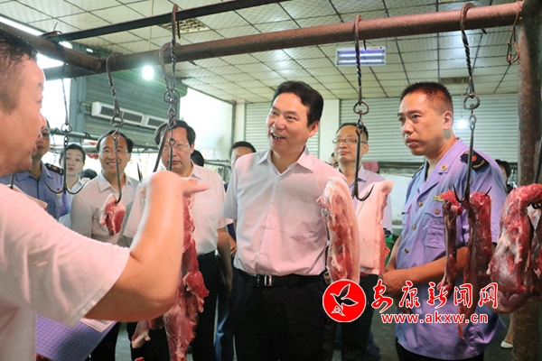 在南門農(nóng)貿(mào)市場,趙俊民實地查看了放心豬肉銷售點供應(yīng)情況。他強調(diào),豬肉是群眾日常生活的基本消費品,其生產(chǎn)供應(yīng)情況與群眾生活息息相關(guān),各級各有關(guān)部門要圍繞穩(wěn)定生豬生產(chǎn)、保障市場供應(yīng)做好工作,確保豬肉質(zhì)量安全、價格穩(wěn)定。