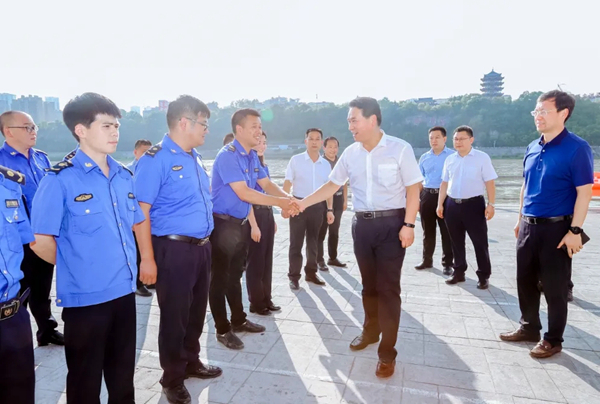 在安康龍舟文化園,趙俊民督導(dǎo)漢江禁洗工作,看望漢江中心城區(qū)段環(huán)境保護(hù)工作人員,并送去防暑降溫慰問品,叮囑他們?cè)陂_展河道洗滌勸導(dǎo)活動(dòng)的同時(shí),注意防暑降溫、保重身體。TLN安康新聞網(wǎng)