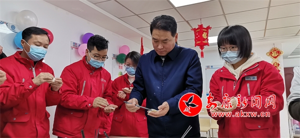 隨后,趙俊民來到項目部職工食堂,與大家一起包餃子吃團(tuán)年飯,其樂融融迎新年。