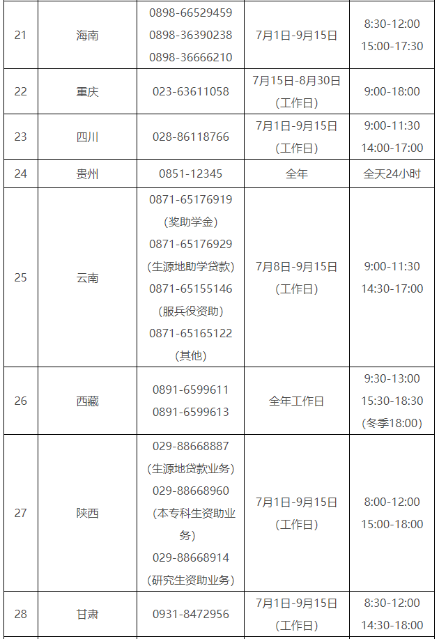 各。ㄗ灾螀^(qū)、直轄市)和中央部門所屬高校同步開通了熱線電話,電話號碼與開通時間可查看匯總表。