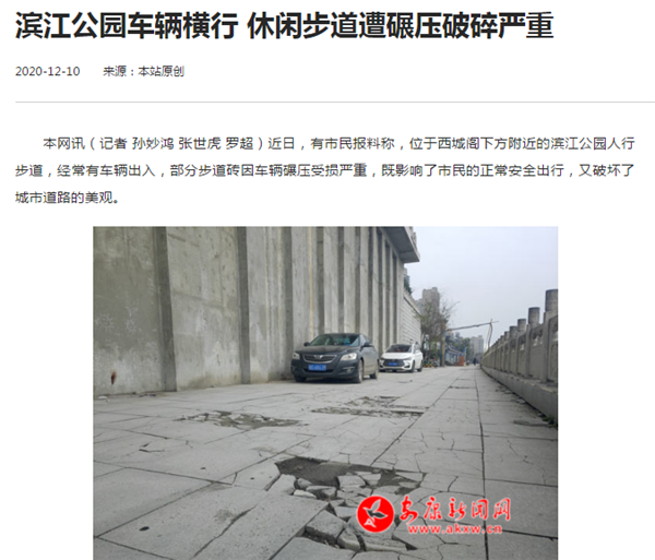 安康新聞網(wǎng)積極履行媒體輿論監(jiān)督職能,開(kāi)設(shè)有“曝光臺(tái)”欄目,主要刊發(fā)市紀(jì)委通報(bào)的典型問(wèn)題。2020年,聚焦民生問(wèn)題,刊發(fā)了《出門(mén)停車(chē)難,回家車(chē)位貴——安康中心城區(qū)物業(yè)小區(qū)停車(chē)問(wèn)題調(diào)查》《“限塑令”下,小小塑料袋緣何依然“橫行”?》《健康就餐:我市推行“分餐制”進(jìn)展調(diào)查》《電動(dòng)車(chē)充電,何時(shí)才能不“飛線”?》等一批原創(chuàng)新聞,反映群眾呼聲,積極推進(jìn)問(wèn)題解決,體現(xiàn)地方黨媒的責(zé)任與擔(dān)當(dāng)。