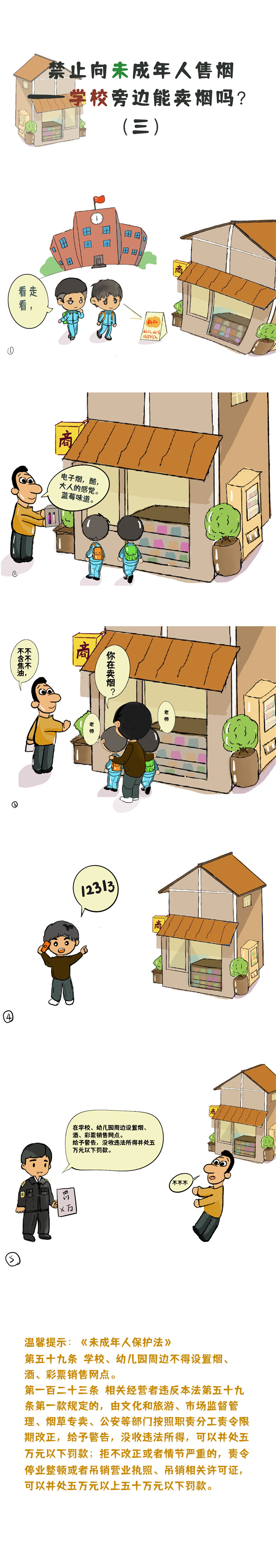 《中華人民共和國未成年人保護(hù)法》中提到禁止向未成年人售煙,那么生活中遇到這些情況我們該怎么做呢?請看下列漫畫。(賈蓓 繪制)