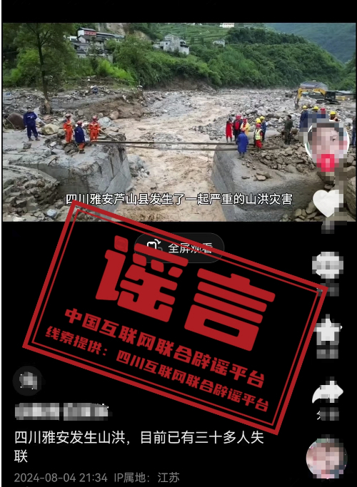 謠言:四川雅安蘆山縣發(fā)生山洪災害致三十多人失聯(lián)?5cn安康新聞網