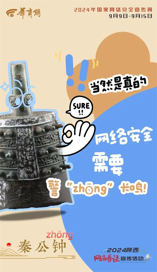 9月9日下午,陜西第十一屆國家網(wǎng)絡(luò)安全宣傳周將在寶雞市開幕。寶雞,曾出土無數(shù)青銅國寶,被譽(yù)為“青銅器之鄉(xiāng)”。今天“國寶”有話說,“點醒”你我他→ EBQ安康新聞網(wǎng)