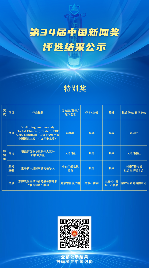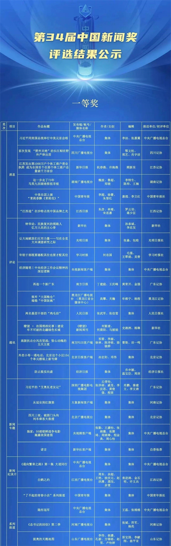 第34屆中國(guó)新聞獎(jiǎng)評(píng)選結(jié)果公示