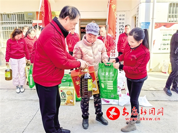 1月28日,漢江志愿者救生隊到漢濱區(qū)石梯鎮(zhèn)馮山村,為村里的困難家庭送去溫暖和關(guān)懷。鄭時根 攝