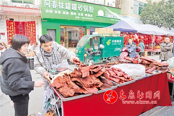 在嵐皋縣城興隆街、建設路農(nóng)貿(mào)市場,臘肉、香腸、臘排骨、臘豬蹄、血豆腐等等紛紛亮相,為市民提供了豐富的年貨。廖霖 攝