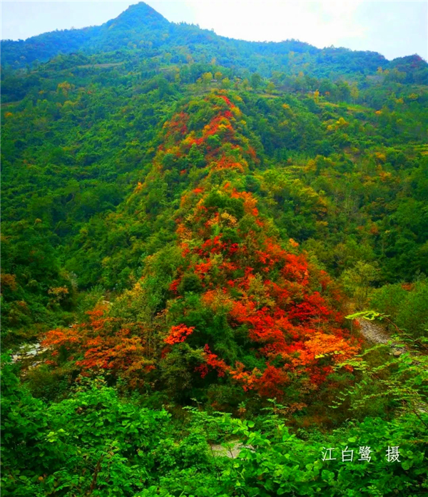 經(jīng)過春的萌生催發(fā)、夏的暑蒸雨淋、秋的風(fēng)吹霜打,茨溝葉色愈發(fā)由青變綠、由綠變黃、由黃變紅。華麗轉(zhuǎn)身之狀,酡顏滿面,似醉若酣。生命的火紅由此升華到極致,成為山野一道道靚麗、奪目、壯觀的風(fēng)景。2Zv安康新聞網(wǎng)