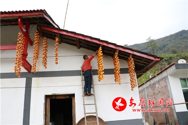 10月30日,漢濱區(qū)茨溝鎮(zhèn)西溝村,家家戶戶都忙著制作柿餅,房前掛滿的玉米、柿子與改造好的民居形成了一道美麗的鄉(xiāng)村秋景。吳亞君/攝 s46安康新聞網(wǎng)