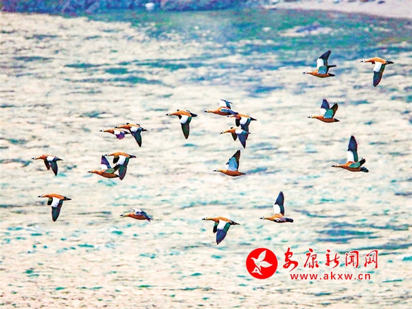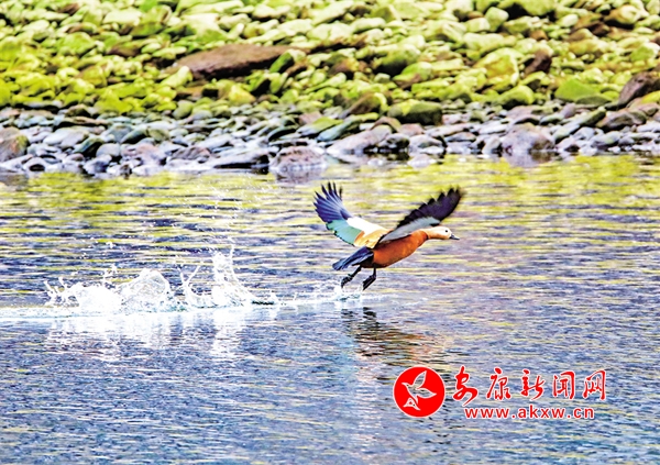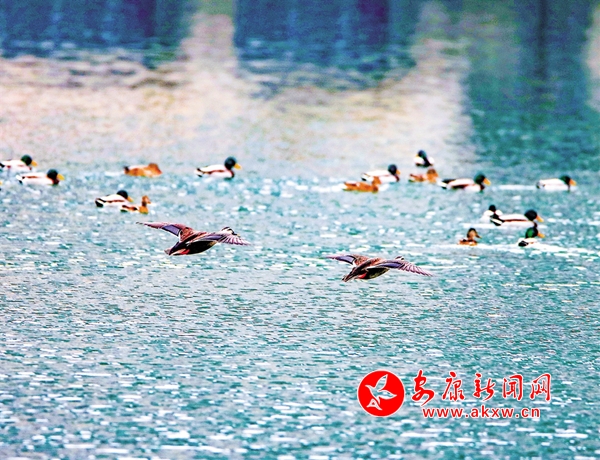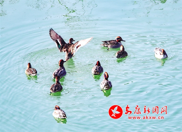 通過(guò)攝影鏡頭觀察發(fā)現(xiàn),在大片野鴨群中有綠頭鴨、斑嘴鴨、赤麻鴨等數(shù)10個(gè)種類(lèi)。它們?cè)谶@里和諧相處,像一個(gè)個(gè)小精靈悠閑自得。一群群野鴨在河里時(shí)而相互追逐,時(shí)而潛水覓食,一會(huì)兒游上岸邊休息,一會(huì)兒展翅飛翔劃過(guò)湛藍(lán)的天空,一幅人與自然和諧共生的美麗畫(huà)卷在石泉徐徐展開(kāi)。Mtk安康新聞網(wǎng)