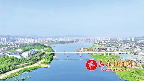4月16日,安康城東。四橋在靜謐的漢江上倒映出五環(huán),遠(yuǎn)處的西城閣和濱江大道與鱗次櫛比的住宅小區(qū)形成了一幅城市風(fēng)景畫。二橋、四橋相互輝映。 陳梅 攝yF4安康新聞網(wǎng)