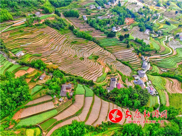 漢陰縣鳳堰古梯田鳳江片區(qū),密密麻麻的梯田猶如天梯直上云端,層層環(huán)抱著山脊,從山腳盤繞到山頂,大如曲池,小似新月,形狀各異,各具特色,阡陌相連,高低錯(cuò)落,層層疊疊。 (圖文/杜開強(qiáng))VdE安康新聞網(wǎng)