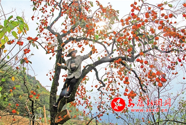 白河縣城關(guān)鎮(zhèn)安福村金秋柿紅。趙久剛 攝Vsv安康新聞網(wǎng)