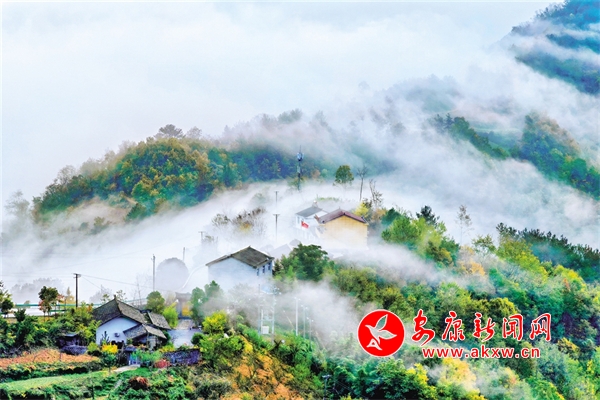 石泉縣城關(guān)鎮(zhèn)楓樹村云霧繚繞。楊勇 攝Vsv安康新聞網(wǎng)