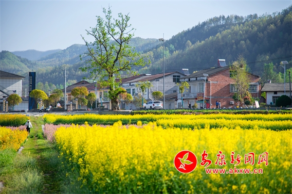近日,石泉縣中池鎮(zhèn)境內(nèi)的油菜花競相開放,金黃的油菜花田與村落民居交相輝映,一幅田園風(fēng)景畫惹人陶醉。儲招賢 攝