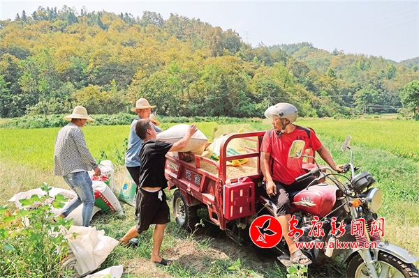 連日來(lái),高溫天氣持續(xù),漢濱區(qū)吉河鎮(zhèn)吉河壩社區(qū)大片水稻已經(jīng)成熟,農(nóng)戶搶抓晴好天氣開鐮收割,一派繁忙的豐收景象。該區(qū)40萬(wàn)畝秋糧作物開鐮收獲以來(lái),農(nóng)業(yè)農(nóng)村部門先后組織調(diào)運(yùn)2000余臺(tái)(套)收割、脫粒等農(nóng)機(jī)參與秋收工作。李勝福 攝